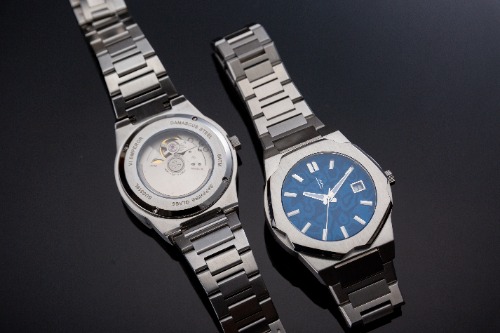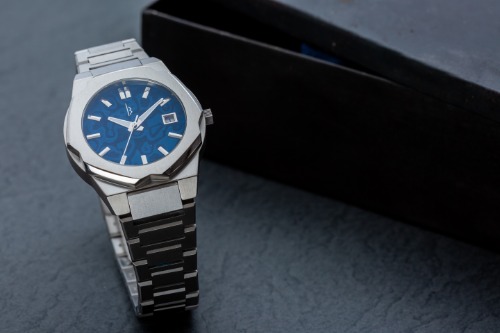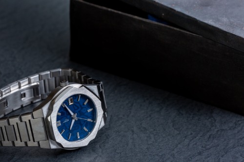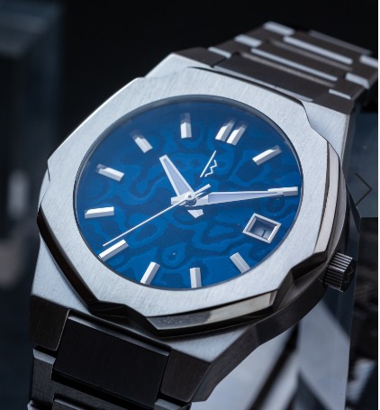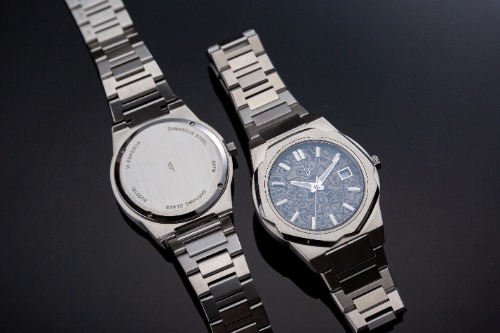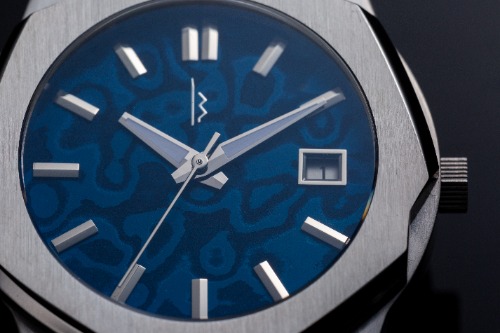 オートマチックタイプには初となる「ブルーダマスカス」を使用した腕時計です。