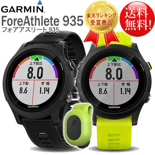 こちらのForeAthlete935は付属に「ランニングダイナミクスポッド」が 本体購入の際付属し、ランニングダイナミクスポッドを使う事によって、走行中のランニングフォームの改善に役立てる事が出来ます。