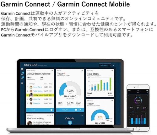さらにスマートフォンとの連携によってGarminConnectを利用することで、スマホに活動データの分析や管理をさせることができ、簡単に記録ログを残せます。