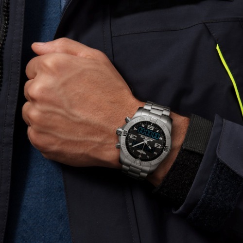 第二時間帯は3時位置にあるので、シャツの袖で時計が半分隠れてしまってもサブダイヤルで確認できます。