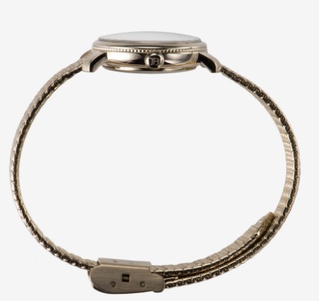 トップの球面ガラスから裏蓋まで続く流れるような美しいシルエットも魅力で、優しい雰囲気を演出してくれます。