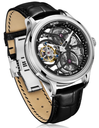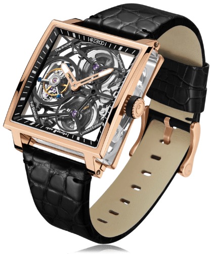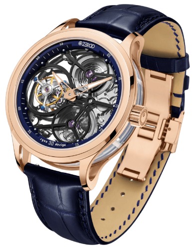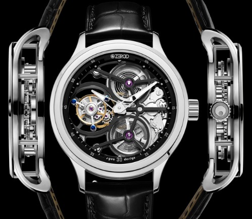 ZEROOのT1は、フルスケルトンのラウンドケース型トゥールビヨンウォッチです。