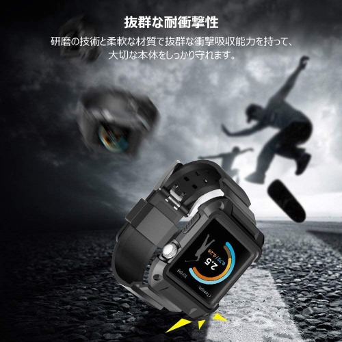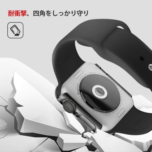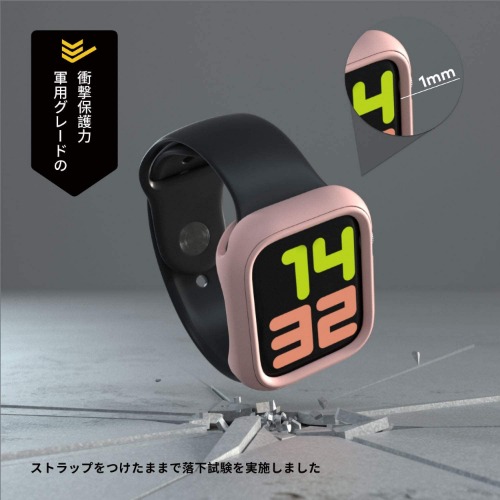 プレミアムシリコンバンド付属の超スリムなケースが耐衝撃プロテクションで、確実にAppleWatchを衝撃から守ります。