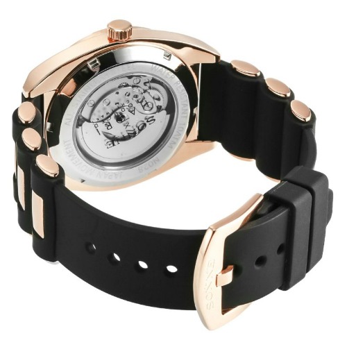 N028PG-BKは、ピンクローズゴールドケースをブラックのベルトが引き締めるカラーリングが特徴のメカニカルウォッチです。