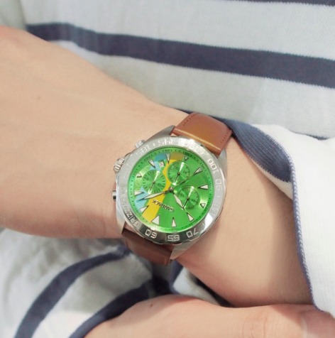 本格的なクロノグラフ機能は時計らしい見た目で、それぞれのキャラクター要素がさりげなく取り入れられています。