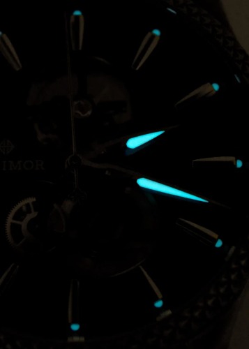 また針とインデックスには蓄光塗料が施されているため、昼間だけでなく夜間も一目で時刻がわかります。