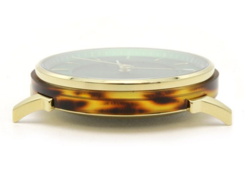 ケースはポリッシュ加工により曇りのない鏡面ケースに、ケースの周りのアセテートリングを0.5mm厚くして周りのデザインを強調させました。