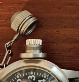 この大きな竜頭キャップは当時「キャンティーン(水筒)」の愛称で親しまれていた300ftの防水性を維持するための形状として用いられていたデザインです。