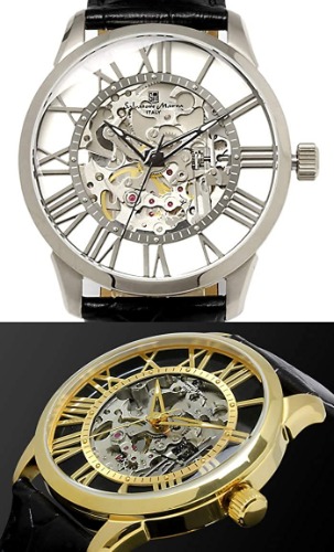 腕時計は「機械式」というメンズも多いのですが、サルバトーレマーラーの機械式SM16101は、両面がスケルトンになっているのが魅力です。