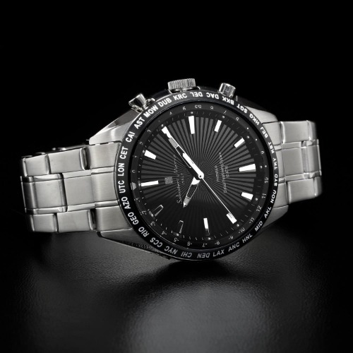 2か国の時刻が同時表示されるのは、グローバルで働くメンズにお似合いです。