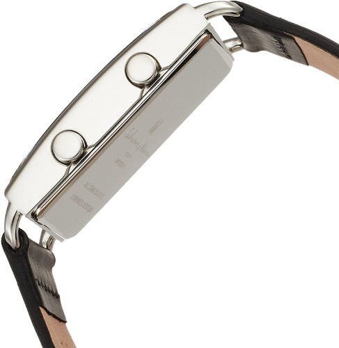 長方形の中にバランスよく配置された文字盤が個性的な腕時計です。