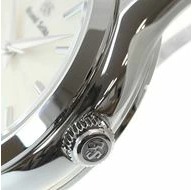 文字盤も12時位置にはダイヤがセットされており、シルバーの文字盤はきらめき、インデックスパーツもシンプルに美しさを際立たせています。