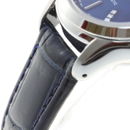 視認性がいいブルーの文字盤に、クロコダイルの濃紺のレザーが落ち着きを与えています。