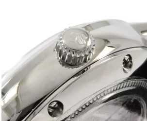 シルバーのバーインデックス、歪みのないラウンドケースは鏡面仕上げとなっており、エレガントな輝きを放っています。