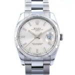 ファインリーエンジンターンドベゼル搭載のオイスターパーペチュアルデイト115210は、ポリッシュベゼルの115200よりもスポーティな印象。