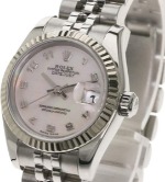 ロレックスデイトジャストの179174NAは、ピンクシェルを使った文字盤とアラビアン数字のインデックスが特徴。