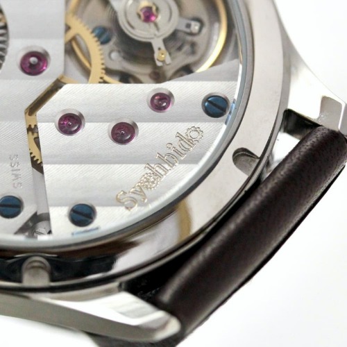 ムーブメントはスイス製かつ振動数18,000のロービートで、摩耗が少なく耐久性が高いのが特徴。