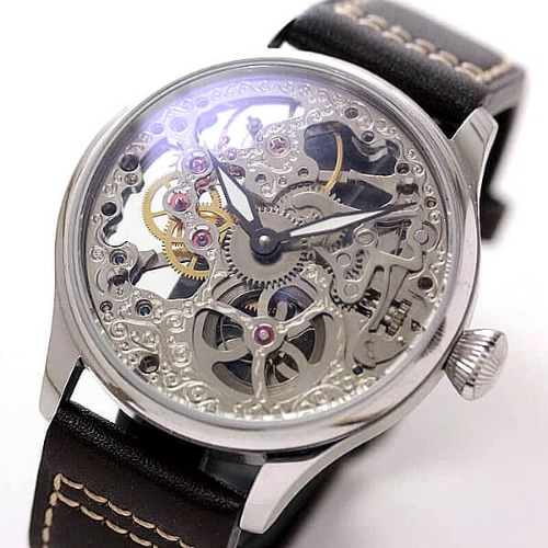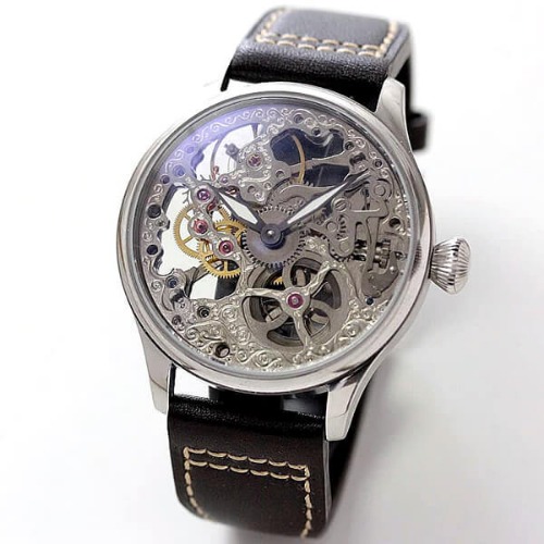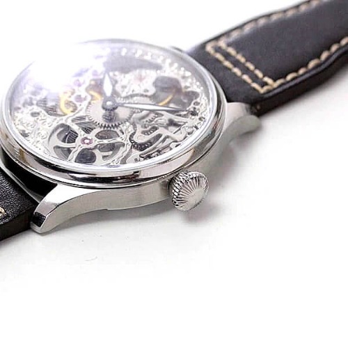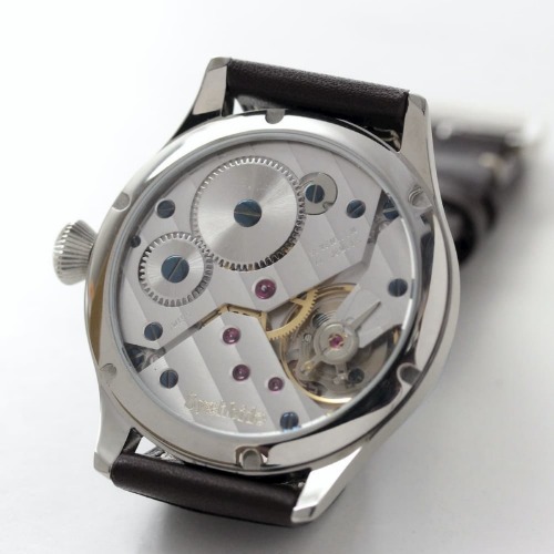 なおこちらのムーブメントはスイス製ではありませんが、気軽に手巻き式時計を楽しめるよう価格を抑えています。