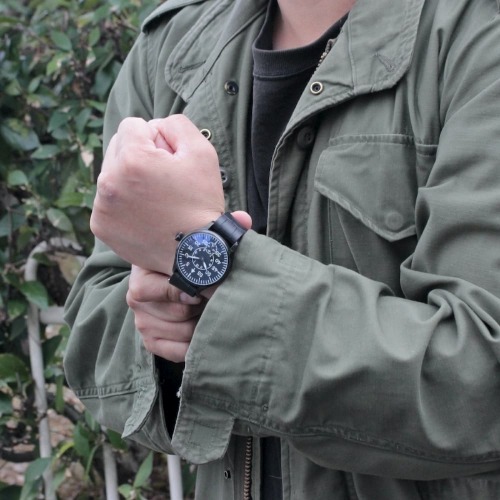 正美堂オリジナルウォッチの中でも人気の高いこちらのS50HWMBBは、クラシックなパイロットウォッチ風デザインが魅力。