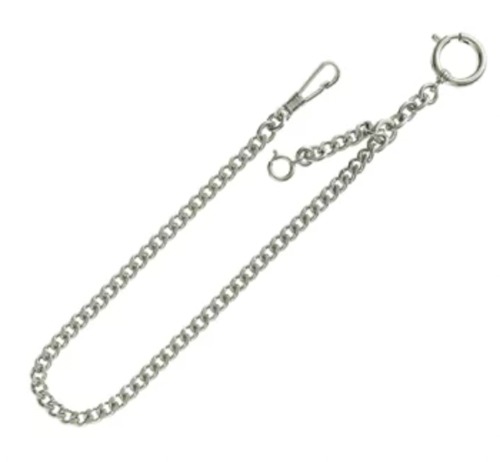 引き輪式のチェーンで、色はシルバーなので懐中時計がシルバーであれば合わせやすいでしょう。