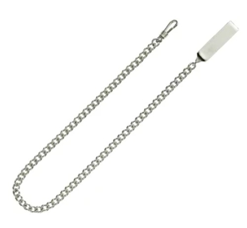 懐中時計のチェーンにはさまざまなものが存在し、ボタンに通すようになっているボタン用、勲章型のチェーン、クリップタイプ、T字バー式、引き輪式チェーンなどあり、女性用ににはブローチ型やネックレスタイプのチェーンがあります。