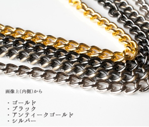 チェーンの素材は金メッキ、真鍮などのほか、金無垢や銀無垢などがあり、そのほか、ニッケル、ホワイトゴールド、クロームメッキがあります。