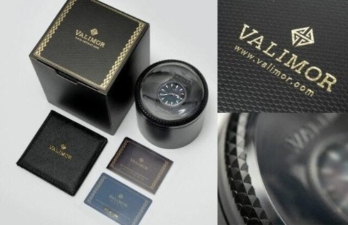 機械式時計として長時間の巻き上げを可能としたミヨタCal.8315を搭載、カバーにはブランド名である”VALIMOR”が刻印されています。