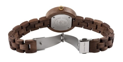木製のベルトはアレルギーが起きにくく、裏蓋はステンレスを採用しているので、肌の弱い方でも安心です。
