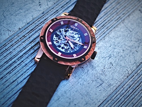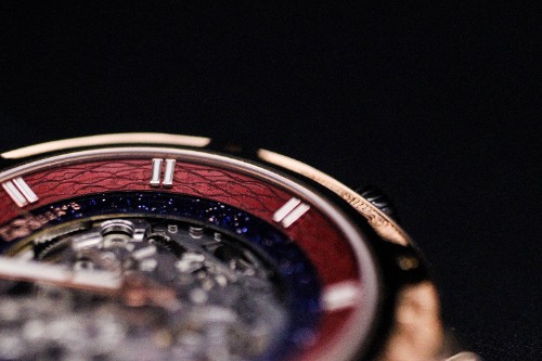 文字盤外側はブロンズを採用し、そこには細かい彫刻がなされ時間を確認するたびにうっとりするような美しさを楽しめます。