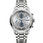 厚さ15mm・ケース径44mmの大ぶりケースに、5連ブレスのずっしりとした着け心地の自動巻きクロノグラフです。