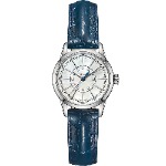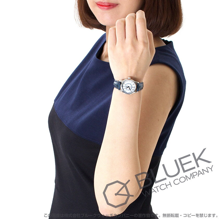質感が柔らかな光彩放つダイヤルに、クロコ型押しブルーレザーベルトを組み合わせた気品に溢れるエレガントな装いを完成させます。