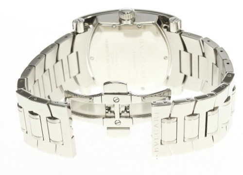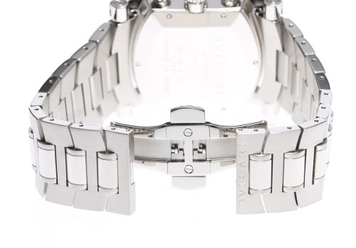 プッシュ式の両開きバックルも魅力で、隅々まで凝った仕上げにブルガリの高級感が溢れる腕時計です。