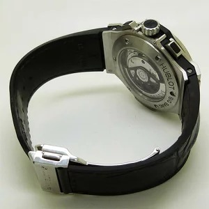 ウブロのコンセプトは異素材を組み合わせることですが、このモデルはラバーベルトとケース・文字盤にはカーボンを使用しています。