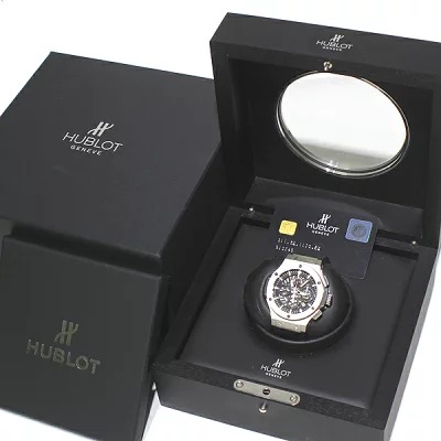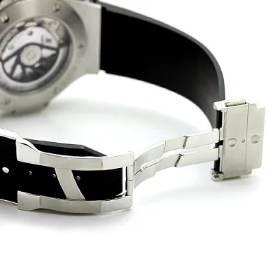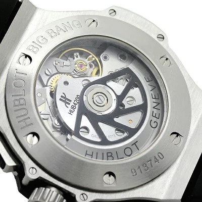 キャリバーはウブロの自社製HUB4214を搭載し、100m防水機能に風防はサファイアクリスタルガラスを採用した逸品です。