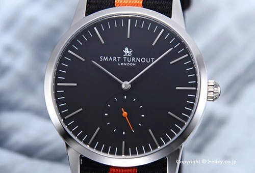 スマートターンアウト STK3-BKは、シンプルなデザインですが文字盤のスモールセコンドのオレンジの針がアクセントになっているおしゃれなモデルです。