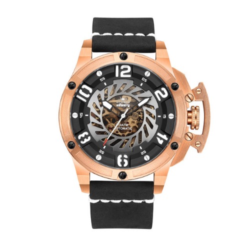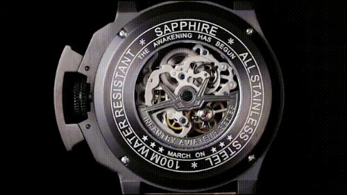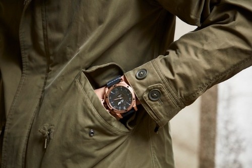ムーブメントにはPVDコーティングが施されているので、渋い色味にも注目です。