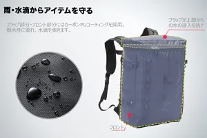 素材には撥水加エを施した1680Dナイロンとポリエステルを使用し、軽量で丈夫に仕上がっています。