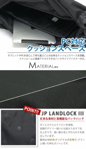 ニクソン LANDLOCK3はB4サイズまで対応したバックパックです。