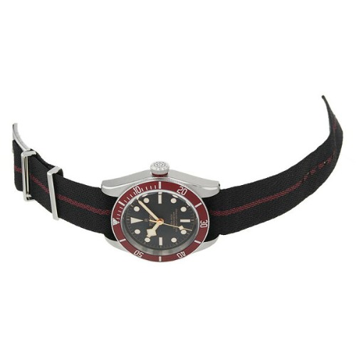 チューダーのファブリックストラップは伝統的なジャガード織りの技術を用いて生産されています。
