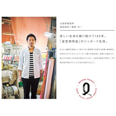 ジャガード織りの高級傘生地は、創業150年・皇室御用達の傘を作り続ける槙田商店(山梨県西桂町)によるものです。