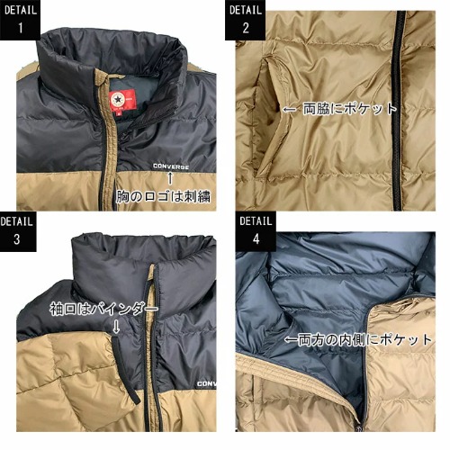 1位 | コンバース ハイブリッドダウンジャケット | 楽天(¥6,930) | ・吸湿発熱が可能な素材 ・消臭・防風機能付き | |