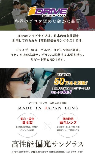 特許取得の「日本製高性能偏光レンズ」を使用した、偏光サングラスです。