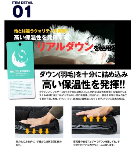 | 配合率 | ダックダウン40%/ポリエステル60% |