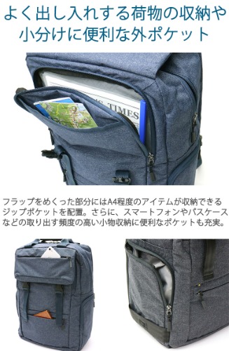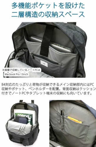 B4サイズが入り、容量は25Lあるので1泊~2泊の出張に人気です。