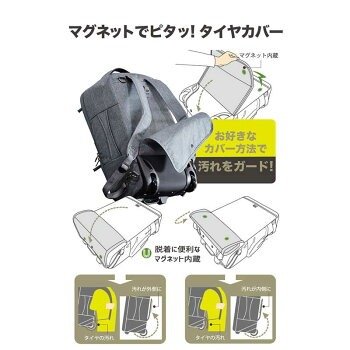 キャリー付きのリュックは背負ったときにタイヤの汚れが気になる方もいますが、スパッソ 6WAYビジネスバッグは、タイヤカバーがついているので、背中を汚すことがありません。