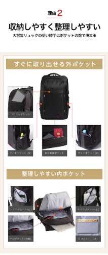 やはり両手が空き、多彩なポケットがあるリュックは便利でしょう。