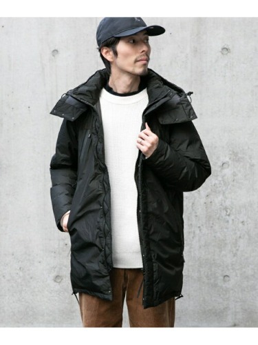 ロングレングスのダウンコートで15D+50D×15D+50Dの2レイヤーPUラミネートをした軽量素材を表地に使用しています。
