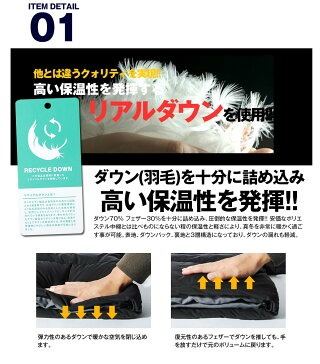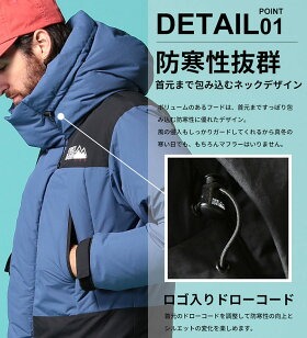 ポイント | ・高品質グースダウン使用 ・3色展開 | ・難燃素材使用 ・760FPのホワイトダックダウン | ・ダウン内蔵フード ・保温性が高い |