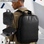 モレスキンのクラシックレザーバックパックは、15インチのノートPCやタブレットが収納できる万能サイズ。