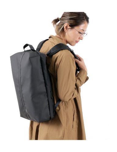 ダークなカラーでまとめたワントーンコーデにもベルーフバゲージのリュックはぴったりとマッチします。
